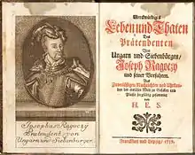 Joseph Rákóczi (Hungarian: Rákóczi József; 17 August 1700 – 10 November 1738) was the second son of Francis II Rákóczi and Charlotte Amalie of Hesse-Wanfried.