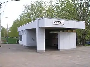 Jāņavārti Station was opened in 1935 as a railway station for the Riga - Ērgļi Railway. Passenger trains of the Riga - Daugavpils Railway started in 1957.[2] Near the station is a pedestrian bridge, which has been closed since 2003, because of its poor technical condition.[3] The platform of the Riga - Ērgļi Railway has remained, although passenger trains have not run there since 2007. Currently all trains that are not 'Express' stop at the station. [4]