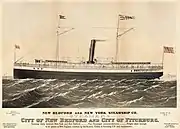 City of New Bedfordscrew schooner1874Joseph B. Van Deusen1,085New Bedford & New York Steamship Co.New Bedford, MassachusettsAntonio Jacobsen ja1005 the city of New Bedford wm For service on Long Island Sound.[28]