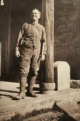 Andersson paid his first visit to Zhoukoudian in 1918 drawn to an area called "Chicken Bone Hill" by locals who had misidentified the rodent fossils found in abundance there.[3] He returned in 1921 and local quarrymen took him to Dragon Bone Hill, where he identified a quartz sample that was not native to the area. Realising that the presence of non-native quartz may indicate the presence of prehistoric man, he sent his assistant, Otto Zdansky to the area and ordered him to excavate it. Zdansky returned and conducted further excavations in 1923 and a large amount of material was shipped to Uppsala for analysis. Eventually in 1926, on the occasion of a visit by the Swedish Prince to Beijing, Andersson announced the discovery of two human teeth. These were later identified as being the first finds of the Peking Man.[4]