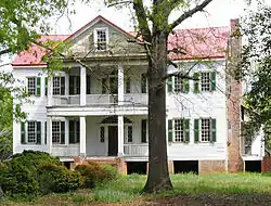 It was built in 1815, and is a two-story, white clapboard house on high brick supports in the Federal style with Palladian features. The house also has a portico in the Greek Revival style. The façade front features a double-tiered portico with pediment surmounting the second level portico.[2][3]