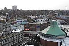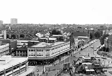 J. F. Dixon, a draper from Upper Norwood opened his own drapery store in 1913.[3] The Southend store was located on the corner of London Road and what was called The Broadway, now known as the High Street with its main competitors being Keddies, Brightwells and Thomas Brothers.[4] J.F.Dixon was the son of a draper, John Dixon who ran his own drapery business in Gainsborough and Stoke Newington. J.F Dixon bought his father's business in Gainsborough in 1932.[2] The Southend store was re-developed under the design of architect Mr Grover, who had previously designed the Southend stores of Garons and Ravens,[5] and was completed by 1938.[6] This included building on the site of the former Theatre Deluxe[3] and had over 40,000 square feet in total. The store was modernised with escalators at the cost of £25,000 in 1956.[7] In 1963 the business joined the 5 day opening movement, closing on Wednesdays and opening until 8 p.m. on Fridays.[8] During the 60s, Dixons was innovative with its advertising having mannequins on display in glass boxes in Southend High Street,[9] while in 1968 the store opened a new department aimed at younger females called Tomorrow's Girl on the first floor.[10] The Gainsborough and Southend businesses were closed voluntary by John F. Dixon in 1972 and 1973.[11][12][13][14] Dixon himself would lead the fundraising for the Palace Theatre trust in 1980, and the new studio was named Dixon Studio after him.[15]