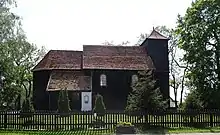 The village has a church which lies on the Wooden Churches Trail around Puszcza Zielonka.