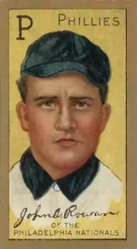 John Albert Rowan (1886-1966) was a Major League Baseball pitcher. He pitched all or part of seven seasons in the majors, between 1906 and 1914, for four teams. When he wasn't pitching in the majors, Rowan played for the Dayton Veterans of the Central League in 1908 and from 1912 until 1917.