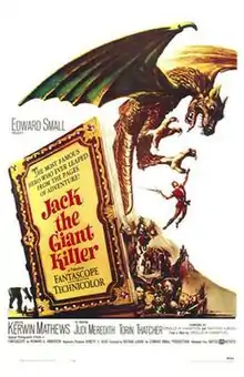 Jack the Giant Killer is a 1962 American heroic fantasy adventure film starring Kerwin Mathews in a fairy tale story about a young man who defends a princess against a sorcerer's giants and demons.[1]
