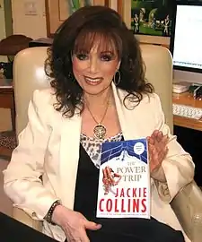Jacqueline Jill Collins OBE (4 October 1937 – 19 September 2015) was an English romance novelist and actress. She moved to Los Angeles in 1985 and spent most of her career there.[1] She wrote 32 novels, all of which appeared on The New York Times bestsellers list.[2] Her books have sold more than 500 million copies and have been translated into 40 languages.[3][4] Eight of her novels have been adapted for the screen, either as films or television miniseries. She was the younger sister of Dame Joan Collins.