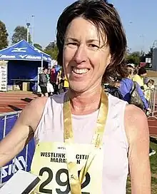 After finishing 11th in her first-ever marathon, in Boston,[5] she won the bronze medal in the marathon at the 2002 Commonwealth Games.[2] In 2005, she won the Gold Coast Marathon.[6]