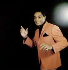 Wilson's powerful, electrifying live performances rarely failed to bring audiences to a state of frenzy.[22] His live performances consisted of knee-drops,[23][24] splits, spins, back-flips,[25][26] one-footed across-the-floor slides, removing his tie and jacket and throwing them off the stage, basic boxing steps like advance and retreat shuffling,[27] and one of his favorite routines, getting some of the less attractive women in the audience to come up to the stage and kiss him. Wilson often said "if I get the ugliest girl in the audience to come up and kiss me, they'll all think they can have me and keep coming back and buying my records."[28]