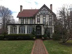 The Jackson–Perkins House is a historic home located at Newark in Wayne County, New York. It is a Tudor Revival style residence purchased in 1864, rebuilt in 1889, and remodeled to its current form in 1921–1922. It was once the home of the Jackson and Perkins families, who once operated a large rose growing facility nearby known as Jackson & Perkins Company. On the 2.66-acre (10,800 m2) property are elements of the original landscape design including the entrance drive, access path, formal fountain in a garden setting, greenhouse foundation, and many mature trees and shrubs.[2]
