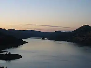 Jacksonville, California is a historical farming town site in Chinese Camp, California in Tuolumne County, California. The site of the Jacksonville, California is a California Historical Landmark No. 419 listed on February 28, 1949. The town in now under the Don Pedro Reservoir formed in 1924. Jacksonville was founded by farmer Julian Smart along the Tuolumne River at an elevation of 800 feet . In spring 1949, Smart planted a garden and an orchard. Smart named the town Jacksonville after Colonel A. M. Jackson. The Tuolumne River provided water not only for the farms but the many 49 California Gold Rush mining operations in the region. In 1852 a US post office opened with a population of 252. The largest mine in the region was the Eagle-Shawmut mine.[1][2][3]