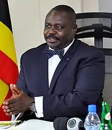 Jacob L'Okori Oulanyah (23 March 1965 – 20 March 2022) was a Ugandan agricultural economist, lawyer, and politician, who served as the Speaker of the 11th Parliament of Uganda from 2021 to 2022. He was elected to that position on 24 May 2021, after defeating his tenacious rival the then incumbent Speaker Rebecca Alitwala Kadaga.[2] He served as Deputy Speaker of the Ugandan parliament, from May 2011 until May 2021.[3] Oulanyah was also the member of parliament representing the Omoro County constituency, Omoro District, Acholi sub-region, in the Uganda's Northern Region.[4]