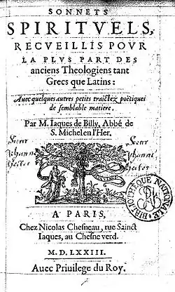 Jacques de Billy (Billi) de Prunay was a French patristic scholar, theologian, jurist, linguist, and Benedictine abbot (1535—December 25, 1581).