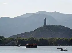 The Jade Peak Pagoda (Chinese: 玉峰塔; pinyin: Yù Fēng Tǎ) is a Chinese pagoda on Jade Spring Hill in an Imperial Garden, Jingming Yuan (Chinese: 靜明園; pinyin: Jìng Míng Yuán), in Beijing, China. The site was originally an imperial retreat during the Liao Dynasty (9071125) and was renovated by the Qianlong Emperor (r. 17351796) in 1752.[1]