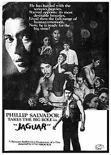 Jaguar is a 1979 Filipino neo noir crime film directed by Lino Brocka.[1] It was entered into the 1980 Cannes Film Festival.[2] The story is based on the real-life "Brown Derby Shooting" in 1960 as documented by Quijano de Manila in the article "The Boy Who Wanted to Become Society", later republished in the non-fiction crime anthology, Reportage on Crime (1977).[3][4]