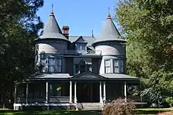 James A. and Laura Thompson Long House is a historic home located at Roxboro, Person County, North Carolina. It was built in 1896, and is a two-story, rectangular, Queen Anne style frame dwelling with a rear ell and enclosed rear porch. It features round towers with conical roofs at the front corners, a one-story wraparound porch with Doric order columns, and a hipped slate roof with dormers. The house was subdivided into apartments in the 1940s. Its builder, J. A. Long (1841–1915),[2] is considered the "founder of modern Roxboro."[3]