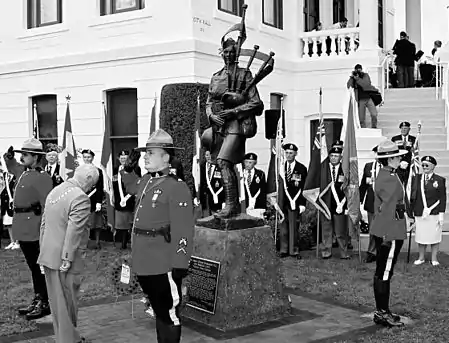 On 8 November 2006, the bagpipes were officially repatriated when troops from The Canadian Scottish Regiment (Princess Mary's) placed them at the British Columbia Legislature as a reminder of a generation's valour. They are currently on public display.