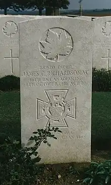 James Cleland Richardson VC (25 November 1895 – 8/9 October 1916) was a Canadian recipient of the Victoria Cross, the highest and most prestigious award for gallantry in the face of the enemy that can be awarded to British and Commonwealth forces.