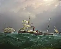 James Edward Buttersworth (1817–1894) was an English painter who specialized in maritime art and is considered among the foremost ship portraitists in the United States of the nineteenth century.[1] His paintings are particularly known for their meticulous detail, dramatic settings, and grace in movement.