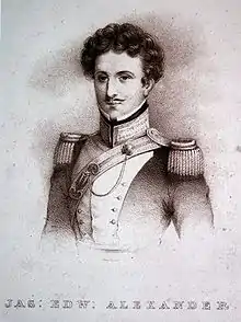 General Sir James Edward Alexander Kt KStJ CB KLS FRSE FRGS[11] (16 October 1803 – 2 April 1885) was a Scottish traveller, author and soldier in the British Army.