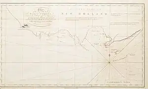 Thanks to his friendship with Captain John Schank,[1] as a lieutenant he took command of Lady Nelson, a new vessel of 60 tons fitted with a centre-board (or "Schank") keel, towards the end of 1799 he sailed from the River Thames for Port Jackson on 18 March 1800. A brig of 60 tons, she carried a crew comprising the commanding officer, two mates and twelve seamen. His instructions were to proceed to Australia to prosecute "the discovery and survey of the unknown parts of the coast of New Holland", although it was always intended that he should hand the ship to Matthew Flinders and take command of HMS Supply.[1] He sailed into Table Cape, South Africa on 8 July 1800. Here Grant received dispatches from the Duke of Portland advising him of the discovery of a strait between New South Wales and Van Diemen's Land. He was to sail through it on his way to Port Jackson, instead of sailing around Van Diemen's Land. Thus his was the first ship to sail through Bass Strait from west to east, charting the then unknown coastline. Lady Nelson entered the heads at Port Jackson at six in the evening of 16 December 1800 after a passage of seventy-one days from Cape Town.