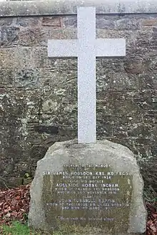 He died in a sleeping car of a train travelling from London to Edinburgh on 28 May 1928.[9] He is buried in Dean Cemetery in western Edinburgh with his wife and mother, on the south path of the northern Victorian Extension, towards the east end, backing onto the original cemetery.