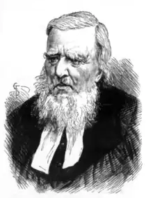 There were others besides the Senatus Academicus of Glasgow who felt it an honour to themselves to honour the face of the old man. Thomas Guthrie and his son, the minister of Liberton Free Church, paid a visit to Dr Ingram in 1871, and greatly cheered the heart of their venerable friend by their genial company and conversation. On his return to Edinburgh, Dr Guthrie set about the raising of a subscription for a portrait of Dr Ingram, and Mr Otto Leyde went to the Free Church Manse of Unst to execute the commission assigned to him. He succeeded in producing a characteristic likeness, life size, and the portrait having been presented to the Free Church, once adorned the walls of the Common Hall of the New College, Edinburgh. A smaller replica of this canvas was taken by the artist, and, along with a silver tea service, was presented to Dr Ingram, to be preserved as an heir-loom in the family.[1][9]