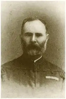 For his conspicuous gallantry during the attack on Rorke's Drift post by the Zulus on the night of the 22nd January 1879, when he actively superintended the work of the defence, and was amongst the foremost of those who received the first attack at the corner of the hospital, where the deadliness of his fire did great execution, and the mad rush of the Zulus met with its first check, and where, by his cool courage, he saved the life of a man of the Army Hospital Corps, by shooting the Zulu who having seized the muzzle of the man's rifle, was in the act of assegaing (thrusting an assegai into) him. This officer, to whose energy much of the defence of the place was due, was severely wounded during the contest, but still continued to give the same example of cool courage.[1][2]