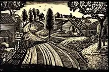 Early in his career, Wells was primarily a graphic artist. He worked with block printing, lithography, and etching. He created graphic illustrations for books, journals, and other publications, including illustrations for a poetry collection of Marianne Moore and history periodicals of the Association for the Study of Afro-American Life and History.[3] In 1929, Wells was hired as a crafts instructor at Howard University in Washington, D.C. He taught block printing, ceramics, clay modeling and sculpture. Two years later, Wells convinced Howard University's College of Fine Arts to offer classes in linoleum printmaking. Wells was known for his inventive and modern printmaking.[4] He was an influential teacher and mentor to young artists during his career, including sculptor Elizabeth Catlett and print-maker Stephanie Pogue.[5][6] A devout Christian, he often used biblical scenes and imagery in his work.[7] Wells established the arts and crafts program at Utopia Children's Center in New York City where Jacob Lawrence[8] became a student of Charles Alston.