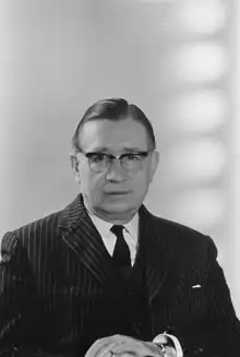 James Eduard Schwarzenbach (5 August 1911 – 27 October 1994) was a right-wing Swiss politician and publicist. In the 1970s he was head of the short-lived Republican Movement. He also was publisher of fascist, völkisch, and antisemitic literature as the owner of Thomas-Verlag. He served in the National Council from 12 December 1967 to 28 February 1979, representing the Canton of Zürich.[1]