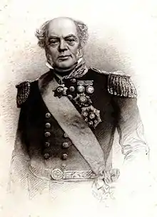 Dundas returned to England in January 1855 and was appointed to the Turkish Order of the Medjidie (First Class) on 15 May 1855,[12] advanced to Knight Grand Cross of the Order of the Bath on 5 July 1855[13] and awarded the Grand Cross of the French Legion of Honour on 30 April 1857.[14] Promoted to full admiral on 8 December 1857,[15] he died at Weymouth in Dorset on 3 October 1862.[2]