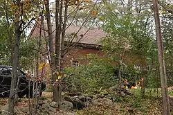The Janicke House is located in a rural setting of central Goshen, on the north side of Goshen Center Road, about 1.6 miles (2.6 km) east of New Hampshire Route 31. It is set on a rise close to the road, from which it is separated by a fieldstone wall. It is a 1+1⁄2-story wooden structure, with a gabled roof and clapboarded exterior. It is about 36 by 25 feet (11.0 m × 7.6 m) in size, with about 2/3 of its walls formed out of wooden planks three inches thick that have been arrayed vertically, with dowels placed horizontally for lateral stability.[2] The remaining walls were built using balloon framing, as part of a later expansion of the structure.[3]