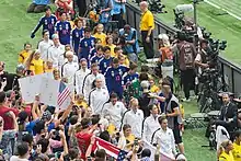 The formerly one-sided rivalry became closer in the period following Japan's upset penalty shoot-out win in the 2011 FIFA Women's World Cup Final.[11] Even while contesting three major tournament finals in four years, the teams' rivalry remained conspicuously respectful.[12][13] In the immediate aftermath of the 2011 final, Carli Lloyd graciously congratulated the winners.[14] While Aya Miyama delayed her participation in the celebrations to hug her defeated opponents.[15]