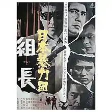 Japan Organized Crime Boss (Japanese: 日本暴力団 組長, Hepburn: Nihon boryoku-dan: Kumicho)[1] is a 1969 Japanese yakuza film directed by Kinji Fukasaku.