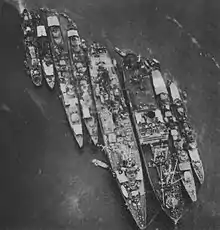 On 30 March 1944, while anchored off Urukthapel in the Palau Islands, Akashi was hit numerous times by bombs and rockets from American aircraft from Task Group 58, during Operation Desecrate One. She was sunk in shallow water with her bridge still remaining above the water.[2][3]