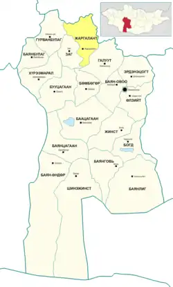 - ↑ "Jargalant Sum". Jargalant. Bayankhongor Aimag. Retrieved 2 June 2020.