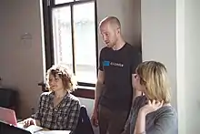 In addition to editing, Moore has participated in building the Wikimedia movement by organizing local meet-ups and training new editors.[4] A 2013 edit-a-thon he organized at the Portland Art Museum[8][9] invited people to use institutional resources to improve coverage of local artists, arts organizations, and public art.[10] He continued to host Portland-area events, especially to improve Wikipedia's coverage of Portland arts and women artists.[11][12] Moore has also helped organize an LGBT-specific outreach affiliate of the Wikimedia Foundation[13][14] and its Wiki Loves Pride campaign to improve LGBT culture and history-related coverage.[15]