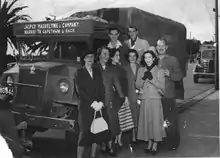 Jasper Maskelyne and his magic troupe departing from Nairobi in 1950. Jasper Maskelyne is on the right, touching the arm of Yvonne Helliwell, his stage assistant.