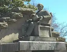 Smith died on August 16, 1918, in Atlanta. Several years prior to his death, Smith had commissioned the construction of a mausoleum in Oakland Cemetery, with a life-sized statue of himself accompanying it.[6][9] According to one story, the sculptor Oliver W. Edwards had originally carved the statue with Smith wearing a necktie. However, Smith, who refused to wear neckties, refused to pay until the tie was removed from the sculpture. Despite Smith's well-documented dislike of neckties, the veracity of this story has been questioned, including by the daughter of the sculptor.[10] Another story claims that when Smith became aware of a vine that had climbed the statue and wrapped itself around the statue's neck, he went to the cemetery and personally removed the vine.[4] As one of the first statues built on the original 6 acres of the cemetery, he is sometimes referred to as the "Mayor of Oakland".[3]