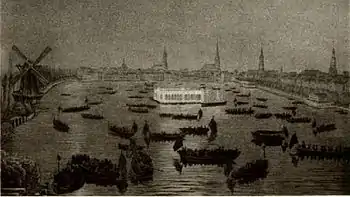 While the commoners (German: Untertanen) in the landlocked Imperial States of the Holy Roman Empire were subjected to bureaucracy and its civil officialdom (German: Beamtentum), Hamburg was distinguished by its honorary self-government by the most respected of its free citizens,[70][71] the Hamburg notables (German: Hamburger Notabeln).[72]