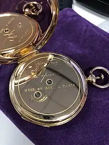 The business was sold to Jean Paul Chapuy in 1815, employing Lepine's nephew Jacques Lépine (working from 1814 until 1825) who had been appointed clockmaker to the King of Westfalia (Germany) in 1809.[2] Later in 1827 it was sold to Deschamps who was succeeded in 1832 by Fabre (Favre). In 1853 passed to Boulay. 1885: Roux, Boulay's son in law. 1901: Ferdinand Verger. 1914: Last acquisition. 1919: Residual stock purchased by Louis Leroy. The business always continued under the name Lépine.[10]