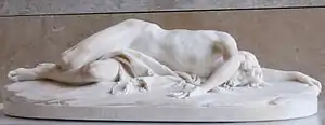 Stouf's Bust of Belisarius at the J. Paul Getty Museum shows the general of Justinian, blinded, as a beggar, in a manner that suggests a philosopher or saint. His reception piece for the Académie Royale de Peinture et de Sculpture in 1785, the Death of Abel, shows Cain's victim sprawled full-length on the ground (Louvre Museum). The Detroit Museum of Art has a terracotta sketch for a Hercules Vanquishing Two Centaurs.