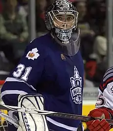 Originally sharing the starting role with the Marlies with Tellqvist, the departure of Trevor Kidd as the prime back-up spot on the Leafs earned Tellqvist a promotion, with Racine earning the starting spot. The signing of Jean-Sébastien Aubin to the club, however, led to the two splitting the games 50/50. With the groin injury of Ed Belfour on December 12, 2005, Aubin was recalled to back up Tellqvist. Racine continued with the Marlies until 2007 when he joined Sherbrooke Saint-François of the Ligue Nord-Américaine de Hockey.[1]