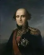 In time Sérurier became vice-president of the Senate and in 1803 was appointed president of a commission that determined the border between France and Piedmont. In 1804 he was named governor of Les Invalides, a hospital and retirement home for veterans. On 19 May that year Emperor Napoleon named him an honorary Marshal of France.[89] Out of 18 marshals appointed on this date, the other three honorary ones were François Joseph Lefebvre, François Christophe de Kellermann and Catherine-Dominique de Pérignon.[90] Sérurier was awarded the Grand Eagle of the Légion d'Honneur and the Grand Cordon of the Order of the Iron Crown. He was ennobled as a Count of the Empire (comte de l’Empire) in 1808 and granted a pension of 40,000 francs per year.[89]