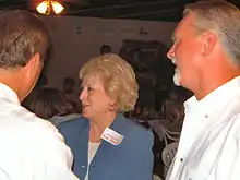 Jean M. Doerge then chose to run in the special election that was held to fill her husband’s seat in the Louisiana House of Representatives. A 60-year-old widow at the time, she garnered 67 percent of the vote to defeat oil company owner Garland Mack Garrett.[18] After serving out the remainder of her husband’s final term, she was then reelected twice in her own right—in 1999 and 2003. Diagnosed with breast cancer, she reported in 2004 that her doctors had informed her that her treatment had been successful. Three years later, she ran for the Louisiana House and was reelected again, earning 57 percent of the vote as she defeated Webster Parish School Board president Ronnie Broughton. Her legislative career then ended in January 2012 due to term limits; she was succeeded by Gene Reynolds (Democrat-Dubberly), who earned 54.7 percent of the vote to defeat his Republican opponent, Jeri de Pingre.[19][20][21]