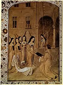 Jean de Meun translated in 1284 the treatise De re militari of Vegetius into French as Le livre de Végèce de l'art de chevalerie. He also produced a spirited version, the first in French, of the letters of Abélard and Héloïse. A 14th-century manuscript of this translation in the Bibliothèque Nationale has annotations by Petrarch. His translation of the De consolatione philosophiae of Boethius is preceded by a letter to Philip IV in which he enumerates his earlier works, two of which are lost: De spirituelle amitié from the De spirituali amicitia of Aelred of Rievaulx (d. 1166), and the Livre des merveilles d'Hirlande from the Topographia Hibernica, or De Mirabilibus Hiberniae of Giraldus Cambrensis (Gerald de Barri). His last poems are doubtless his Testament and Codicille. The Testament is written in quatrains in monorhyme, and contains advice to the different classes of the community.[1]