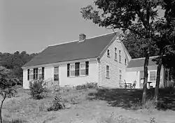 The Jedediah Higgins House is a historic house on Higgins Hollow Road in North Truro, Massachusetts. It is one of the least altered 19th-century Cape style houses in the Cape Cod National Seashore, and an excellent early example of that style. It is a 1+12-story post-and-beam house, whose front facade typifies the Cape style: a central doorway flanked by windows on either side. Its interior floor plan is also typical, with two rooms on the south side and one large one to the north, with a central chimney. Interior finishes have also been preserved, including wood flooring, paneling, and wainscoting.[2]