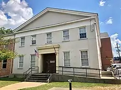 Jefferson County Jail, also known as Jefferson County Jail and Sheriffs House, is a historic jail and residence located at Madison, Jefferson County, Indiana. It was built between 1848 and 1850, and is a two-story, rectangular Greek Revival style masonry building. The building consists of two blocks: a residential section in front and jail block at the rear. A kitchen wing was added in 1859. It features a classic pedimented gable temple front with a recessed entrance and pilasters.[2]:2–3
