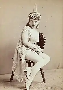 Lee remained at the Strand Theatre through the season of 1870–71 and afterwards accepted an offer from E. A. Sothern to play Mary Meredith that fall at New York's Niblo's Garden in a revival of Our American Cousin.[10] After Our American Cousin closed, Lee (As Jenny Lee) continued to play at Niblo's in such productions as the fairy operetta, Queen Naiad, by Emile Pacardo and Charles. F. Gordon;[11][12] and as Rosey Budd in Black Friday, Henry Harwood Leech's drama based on the murder of financier James Fisk, Jr.[13] Black Friday closed on 5 May 1872, just two days before a devastating fire destroyed Niblo's Garden.[14][15]