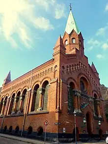 The first Methodist congregation in Denmark was founded on 11 January 1859 and was based in rented rooms in Store Kongensgade.[1] The congregation grew rapidly and funds were raised for a new church which was completed in 1866 to designs by Ferdinand Vilhelm Jensen. The church was known as St. Paul's Church until 1894 when that name was taken over by the nearby St. Paul's Church. It was then called St. Mark's Church until 1912 when it received its current name.[2]