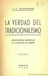 - ↑ Jesús Evaristo Casariego, La Verdad del tradicionalismo: aportaciones españolas a la realidad de Europa, Madrid 1940, p.v